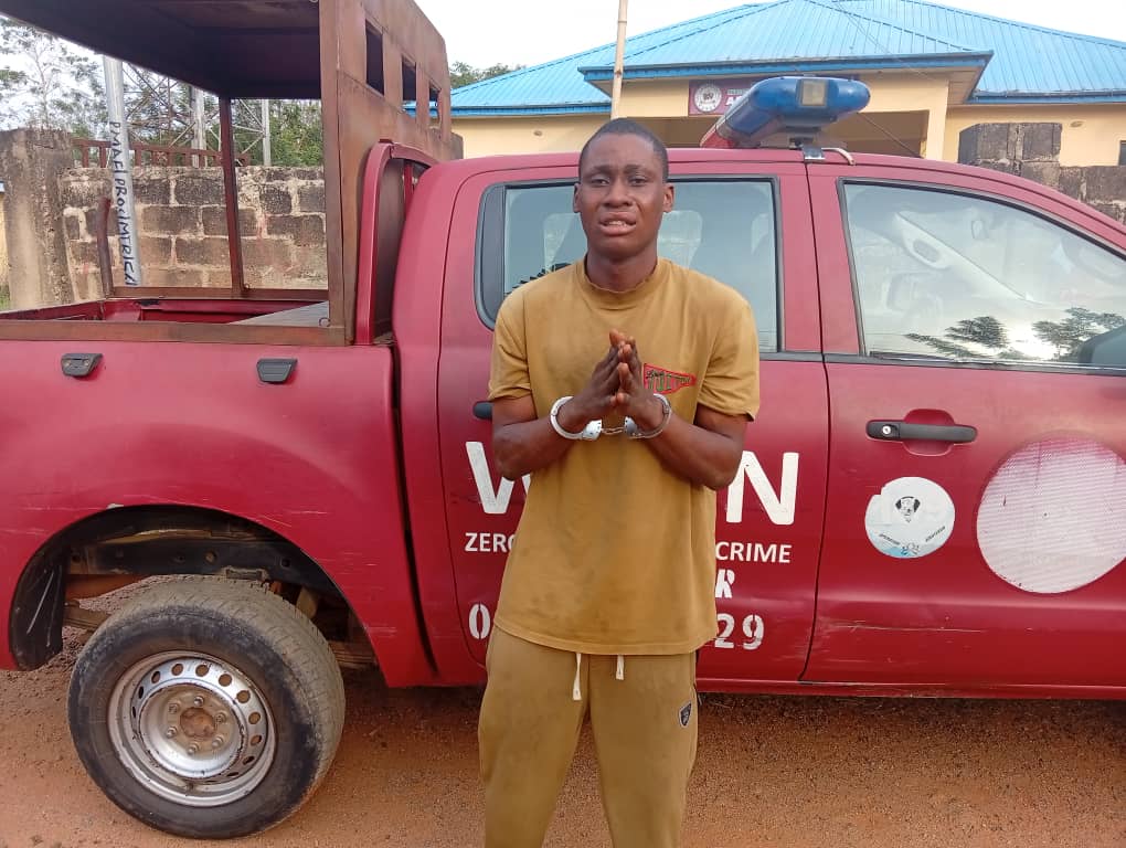The Ekiti State Amotekun Corps in Ekiti South West Local Government Command has nabbed a 28 years old Olapade lfeoluwa, who hailed and resides in llawe-Ekiti for allegedly involvement in the raping of a seven-year-old minor (name and identity withheld).