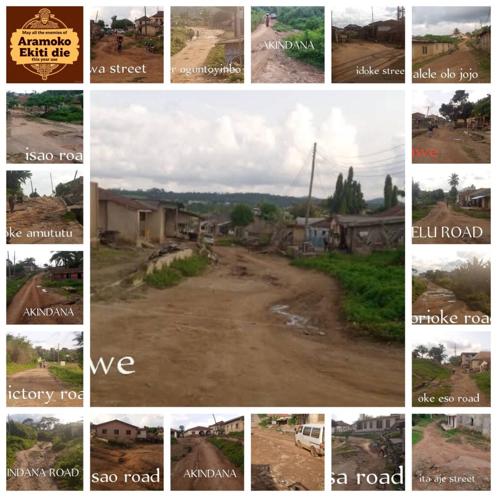 All seems not to be well in Aramoko Ekiti, the headquarters of Ekiti West Local Government Area of Ekiti State considering the worrisome conditions of the State roads across the entire community as shown in the several pictures made public by an indigene, in person of Mr Taju Bamigbola.